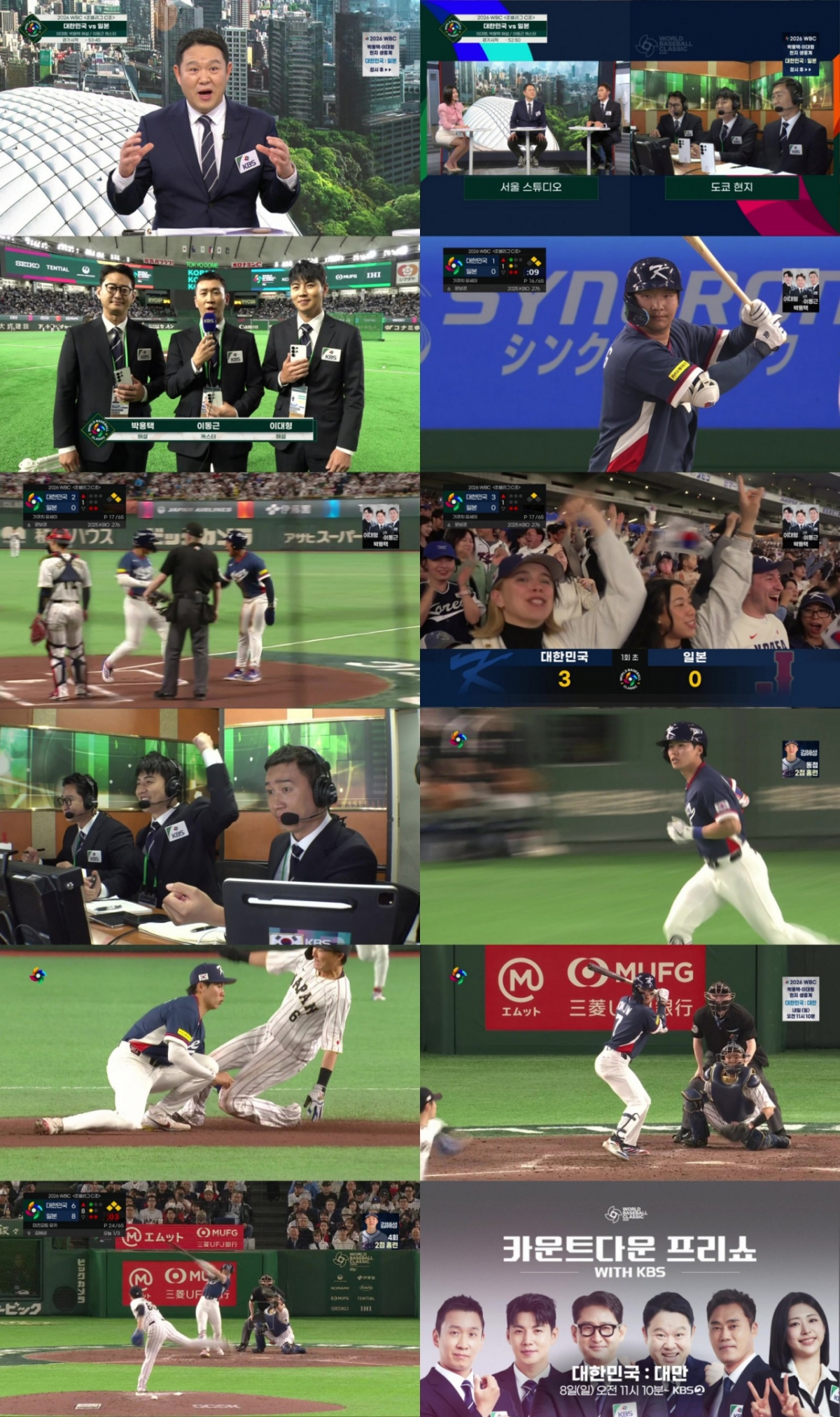 KBS의 박용택X이대형 해설위원과 이동근 캐스터가 함께하는 세계 최고 권위의 야구 국가대항전, 2026 WBC는 오는 3월 18일까지 펼쳐진다. 8일 대만전은 KBS 2TV에서 낮 12시부터 생중계된다. 경기 전 오전 11시 10분부터는 김구라X홍주연X조성환의 '카운트다운 프리쇼'가 진행된다.