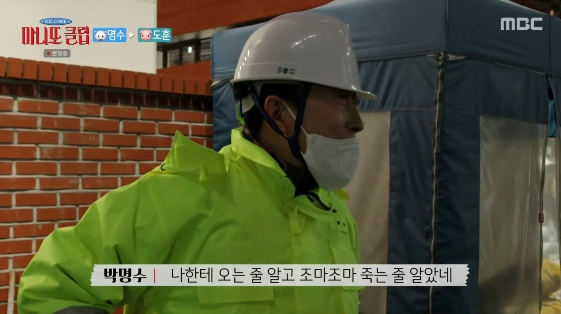 이날 박명수는 자신의 마니또인 김도훈에게 선물을 전달하기 전 언더커버 아이템으로 환경미화원복을 대여했다.