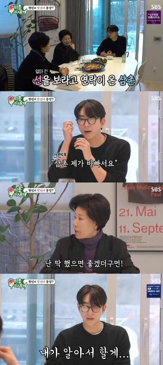 이날 윤현민의 엄마는 "현민이 삼촌이 괜찮은 중매를 섰다"라고 입을 열어 시선을 모았다.