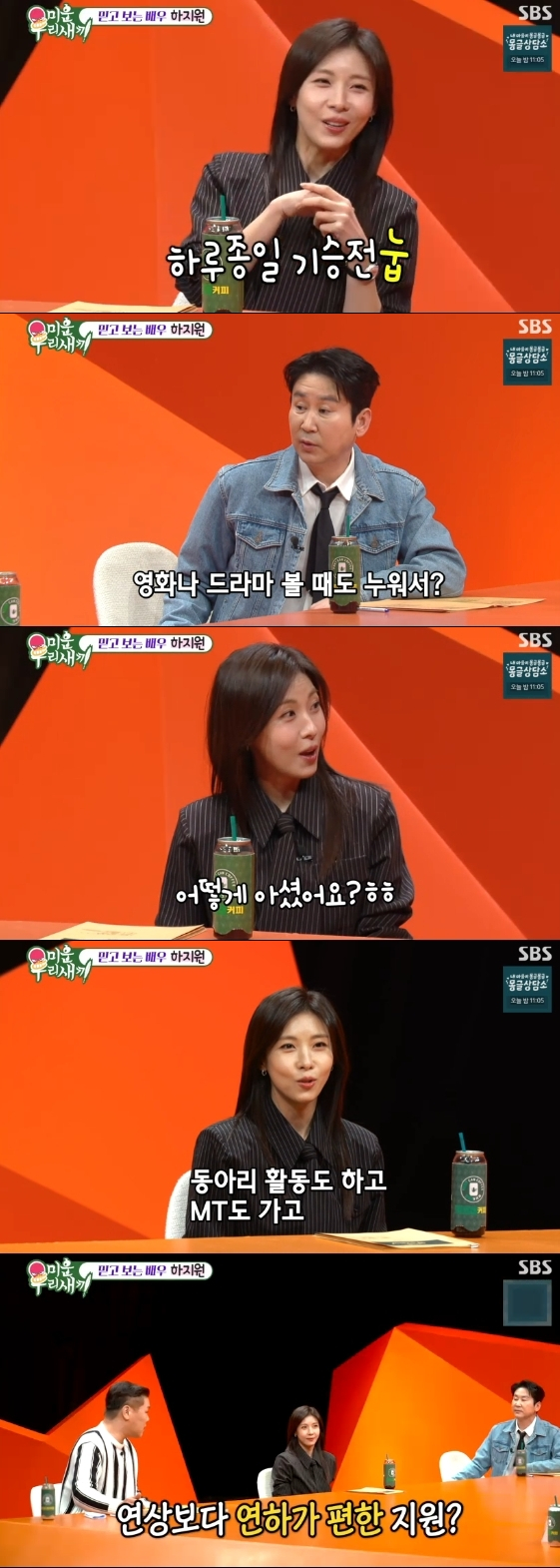 이날 하지원은 "집순이로 유명하지 않냐"는 신동엽에게 "맞다. 촬영할 때 에너지를 다 쓰고 집에서는 주로 누워 있다"라고 맞장구쳐 웃음을 안겼다.