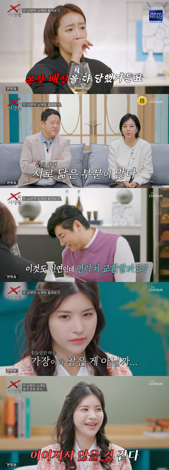 17일 오후 첫 방송된 TV조선 새 예능 프로그램 'X의 사생활'에서는 이혼한 박재현과 한혜주가 전 배우자로서 서로의 일상을 관찰하는 모습이 그려졌다.