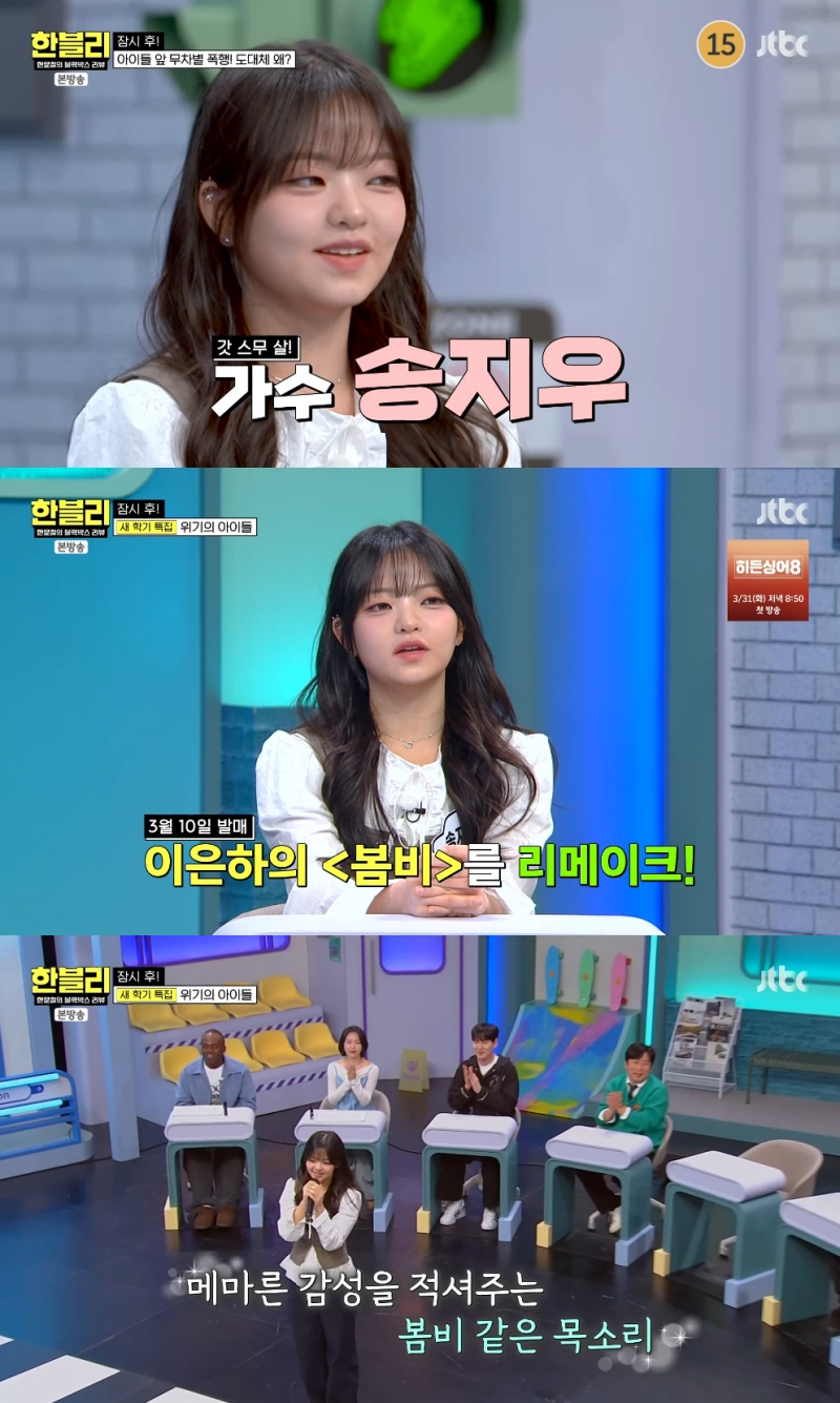 출연진들은 "원곡과 완전히 다른 분위기", "젊은 '봄비' 느낌", "비오는 날 차에서 들으면 좋을 것 같다"라며 또 한번 송지우의 무대에 푹 빠진 모습을 보였다.