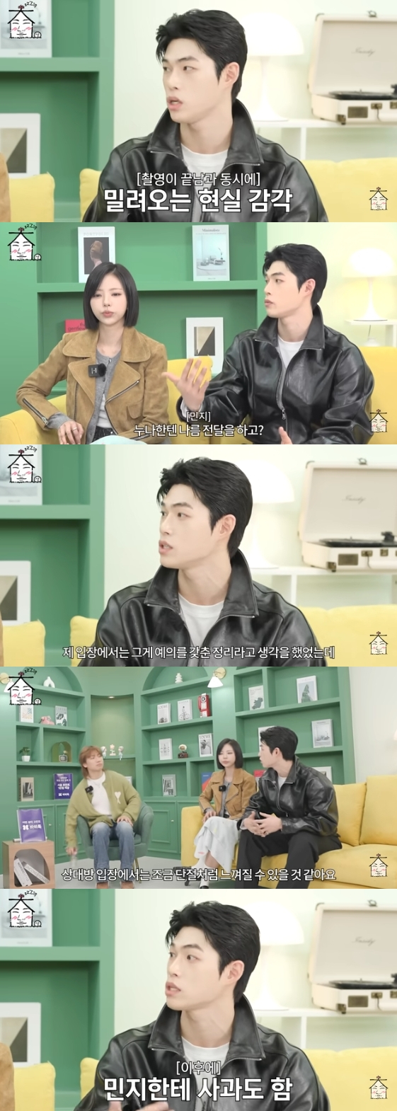그는 "촬영 끝나고 나면 저희 쪽 분들은 다 느낄 감정이라고 생각한다. 현실 감각이 밀려오면서 심리적 부담감이 컸다. 그런 것들을 누나한테 나름 전달하고 제 입장에서는 그게 예의를 갖춘 정리라고 생각했는데 돌이켜 보니까 상대방 입장에서는 단절처럼 느껴졌을 수도 있겠더라"라고 고백했다.