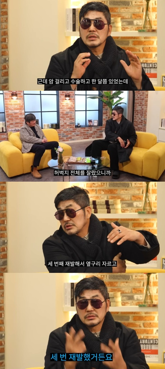 그는 암 투병 중 힘들었던 상황을 털어놓기도 했다. 그는 "암 투병 중에 허벅지 전체를 잘랐다. 다시 재발해서 또 허벅지 자르고 세 번째 재발해서 옆구리 자르고 했다"며 "항암하고 방사선하고 그러니까 체력이 떨어지더라"라고 밝혔다.