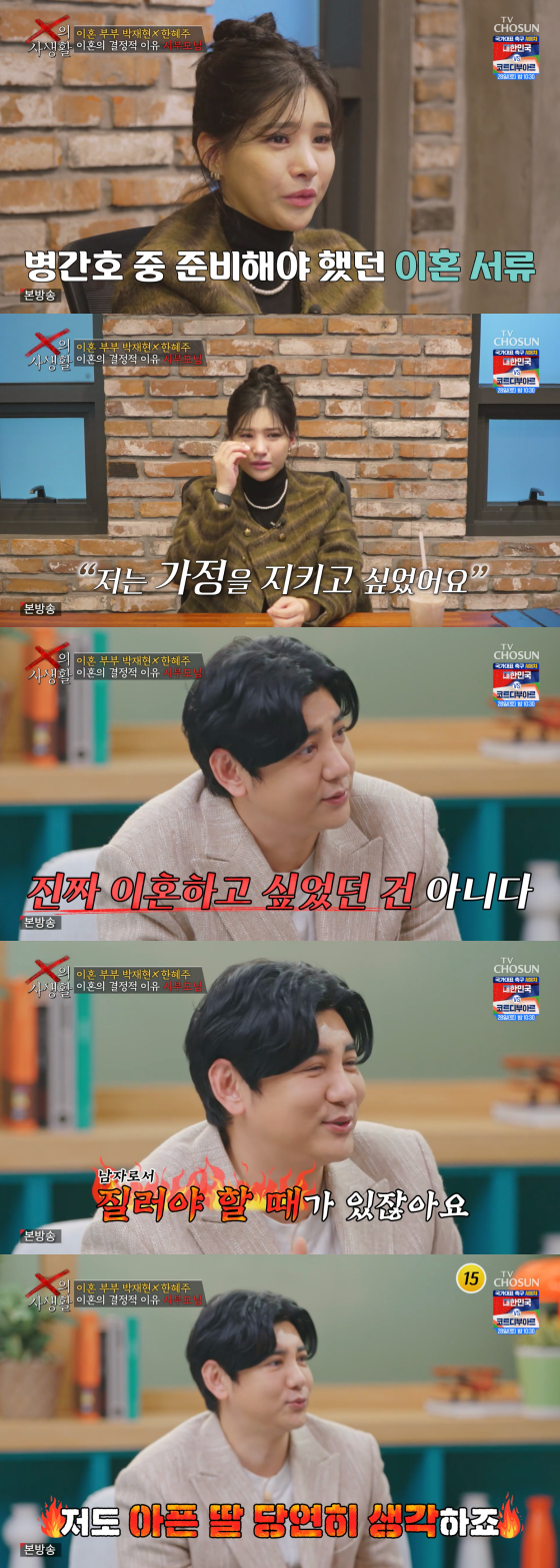이어 "박재현이 마지막으로 이혼하자고 했을 때가 아이를 병간호 해야 했던 시기"라며 "그때 이혼 서류 준비하고 그랬다. 저는 가정을 정말 지키고 싶었다"고 말하며 눈물을 흘렸다.