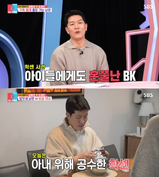 이후 김병현은 미리 만들어둔 학센을 아내에게 전달했다. 앞서 지난 방송에서 김병현은 식당에서 학센을 먹고 싶다던 아내에게 음식을 주지 않고, 김구라에게 학센을 대접해 논란이 된 바 있다.