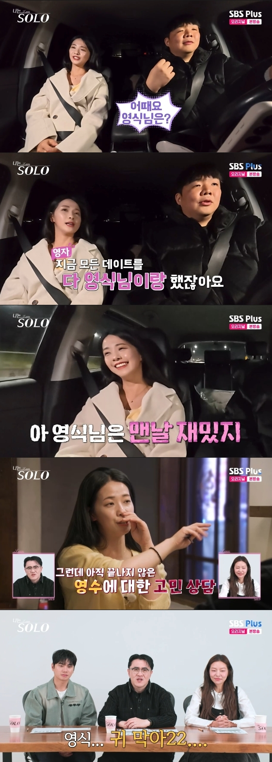 이에 영자는 "지금 모르겠다. 모든 데이트를 영식님과 했다. 너무 지루하고 재미없다. 어제 너무 힘들었고, 표정 관리가 너무 안 됐다"라고 불만을 토로했다.