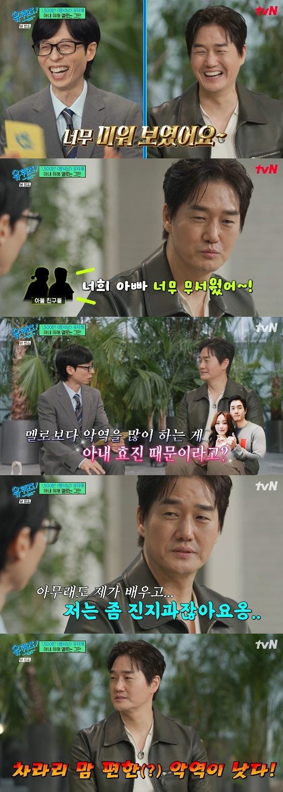 그는 "멜로보다 악역을 많이 하는 게 김효진 때문이냐"는 유재석의 질문에 너무 미화되는 것 같다. 아무래도 제가 배우이고 저는 좀 '진지과'지 않냐"라고 답해 웃음을 안겼다.