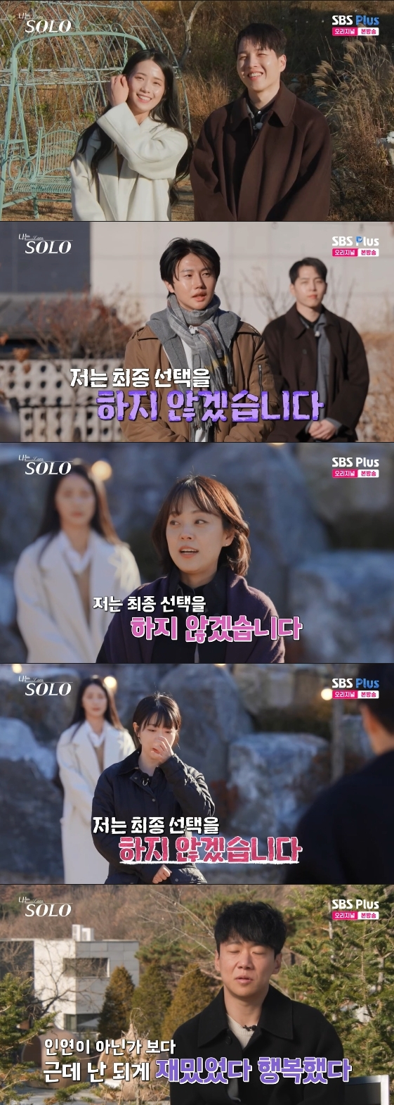 별다른 러브라인이 없었던 상철, 현숙, 광수도 선택을 포기했다. 순자는 영수의 마음이 옥순에게 향했다는 사실을 알고 눈물을 흘리며 선택을 포기했다. 그는 "영수님과 옥순님이 1층에서 이야기하고 있을 때 아무렇지 않은 척 웃으며 인사 밝게 하고 지나갈걸"이라고 뒤늦게 후회했다.