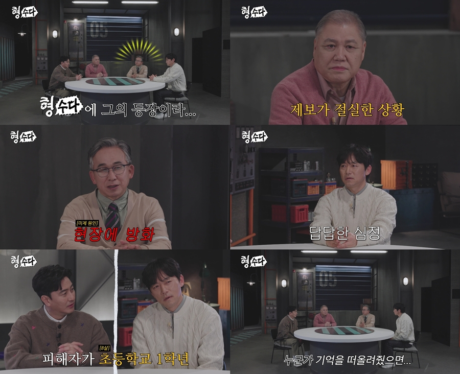 이날 방송은 신정동 연쇄살인 사건, 미입주 아파트 사망 사건, 18년째 도주 중인 황주연 사건 등에 이어 '미제 형수다' 에피소드로 꾸려진다. 윤 전 경무관은 "범인이 피해자를 살해한 뒤 현장에 불을 질러 증거가 대부분 사라졌고, 범행 동기조차 명확히 드러나지 않았던 안타까운 사건"이라고 소개한다. 특히 권일용 프로파일러는 "피해자가 초등학교 1학년이었다"고 밝혀 충격을 더한다. 안정환과 김남일 역시 "말이 안 된다", "반드시 잡아야 한다"며 안타까움을 드러낸다.