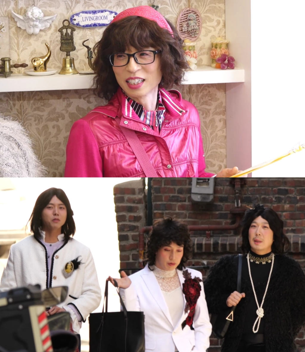 공개된 사진에는 오랜만에 여장을 하고 '유제니'로 나선 유재석의 모습이 담겼다. 강렬한 핫핑크색으로 의상부터 메이크업까지 깔맞춤한 유제니의 출격이 기대를 높인다. 하하는 마음만은 아직 소녀인 '융드욕정', 허경환은 가슴이 뛰는 '화니 엄마', 주우재는 발차기를 잘하는 '장훈 엄마'로 곱게 꽃단장을 하고 나타나 눈길을 끈다.