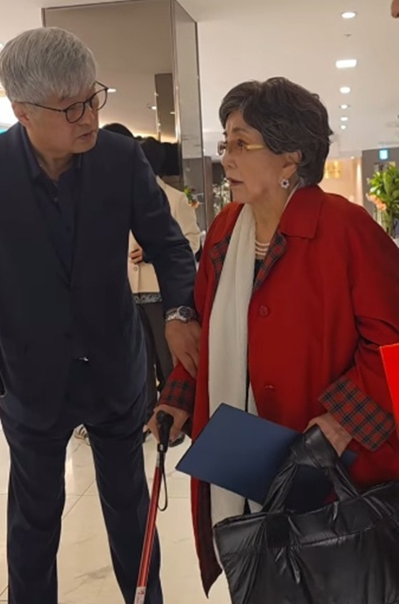 공개된 사진 속에는 지팡이를 짚은 사미자의 모습이 담겼다. 또 양쪽에서 부축받고 있어 눈길을 끌었다.