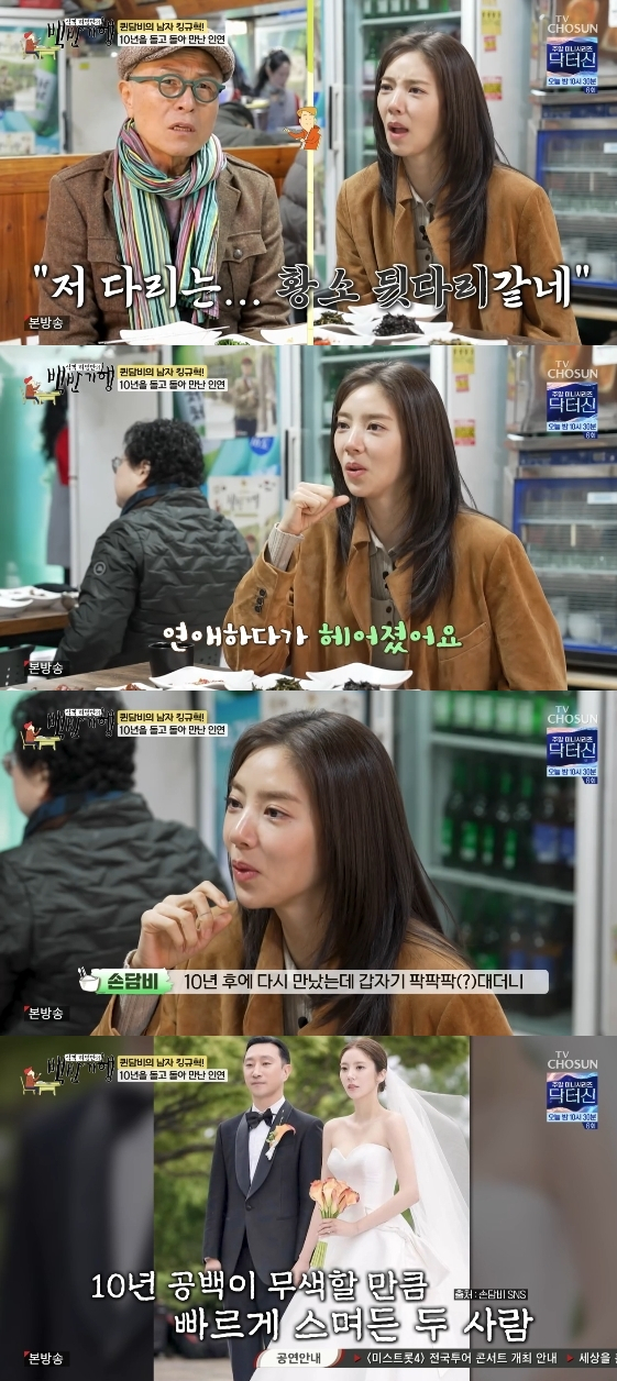 손담비는 이규혁과의 첫 만남에 대해 "13년 전에 잠깐 사귀었다가 헤어졌다"라고 밝혀 허영만을 당황케 했다. 그는 "10년 후에 다시 만났는데 갑자기 팍팍팍 대더니 눈 떠보니 결혼해 있더라. 그리고 눈 떠봤더니 아기를 낳았다"라고 전해 웃음을 안겼다.