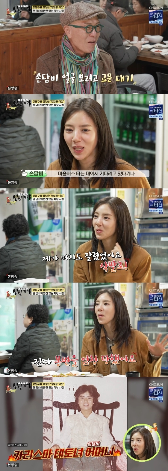 이날 손담비는 "방과 후 교문 앞에 남학생들이 줄 서 있지 않았냐"라는 허영만의 질문에 "여학교라 옆학교 남학생들이 축제 때 많이 왔다. 마을버스 타는 데서 기다리고 있기도 했다"라고 인기를 전했다.