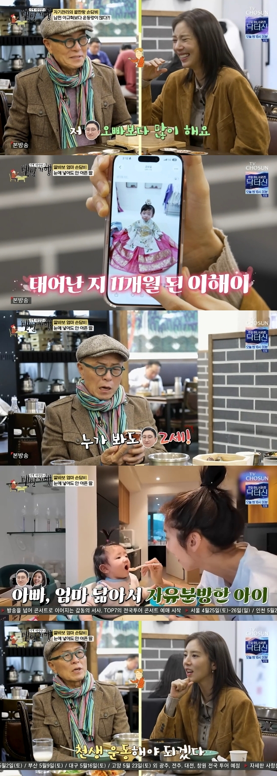 이때 손담비는 허영만에게 자신의 휴대전화에 저장된 딸 해이 양의 사진을 보여줬다. 이를 본 허영만은 "아빠네! 딱이네!"라고 말해 웃음을 안겼다.
