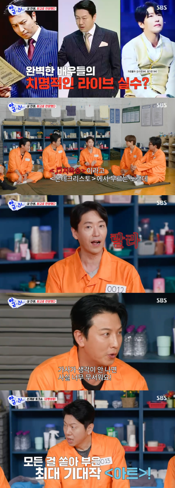 엄기준, 박건형은 무대 위 실수를 털어놨다. 엄기준은 "'몬테크리스토'에서 부르는 '지옥송'이라는 노래가 있다. '선물할게 끔찍한 지옥 너희들에게'라는 가사가 있는데 '알루랄라 알루랄라'라고 불렀다. 머릿속이 백지가 됐다. 딱 한 번 그런 적이 있다. 다행히 어느 정도부터 기억이 나서 엔딩은 살렸다"고 고백했다.