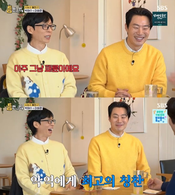 또한 유재석은 지난해 넷플릭스 드라마 '악연'에서 패륜아 역할로 활약했던 이희준에게 "최근 작품들에서 굉장히 임팩트 있었다. 아주 그냥 패륜아"라고 말했다.