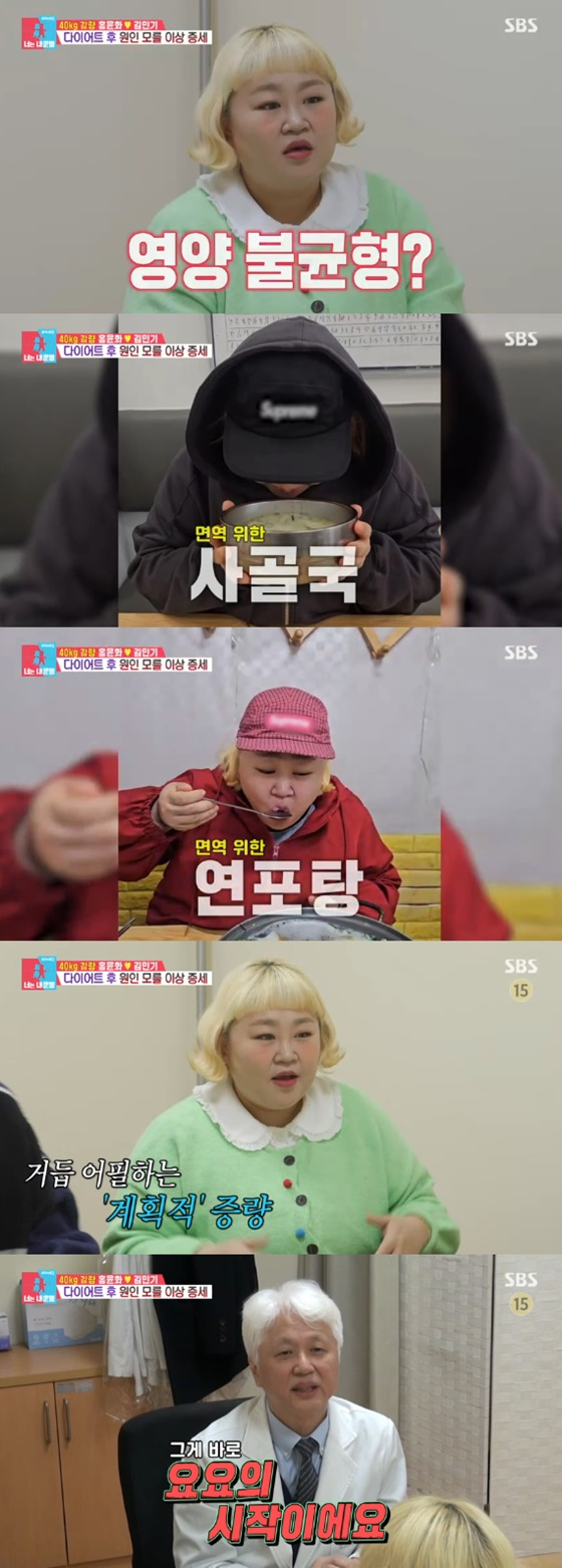 코미디언 홍윤화가 40kg 체중 감량 후 요요를 겪게 됐다.