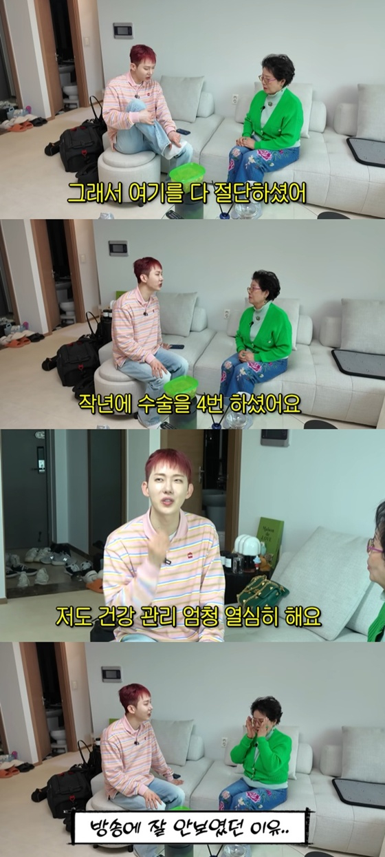 이날 조권은 "엄마 57년생이다. 저 외동아들이다. 저 군대 갔을 때 엄마가 흑색종암, 피부암에 걸려서 여기(발)를 다 절단하셨다"며 "아빠가 54년생인데 작년에 수술을 4번 하셨다. 직장암으로"라고 밝혔다.