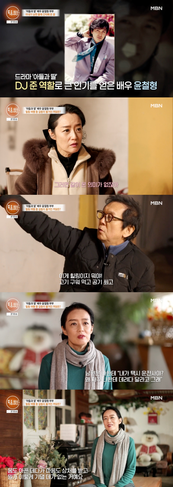 윤철형의 아내는 "갱년기가 되니까 갑자기 몸 여기저기가 아프더라. 제가 병원에 가자고 하면 남편은 억지로 간다. 저는 당연히 남편이 해 줘야 한다고 생각했는데 남편은 '내가 택시 운전사냐. 왜 자꾸 나한테 데려다 달라고 하냐'고 하더라"고 털어놔 충격을 자아냈다.
