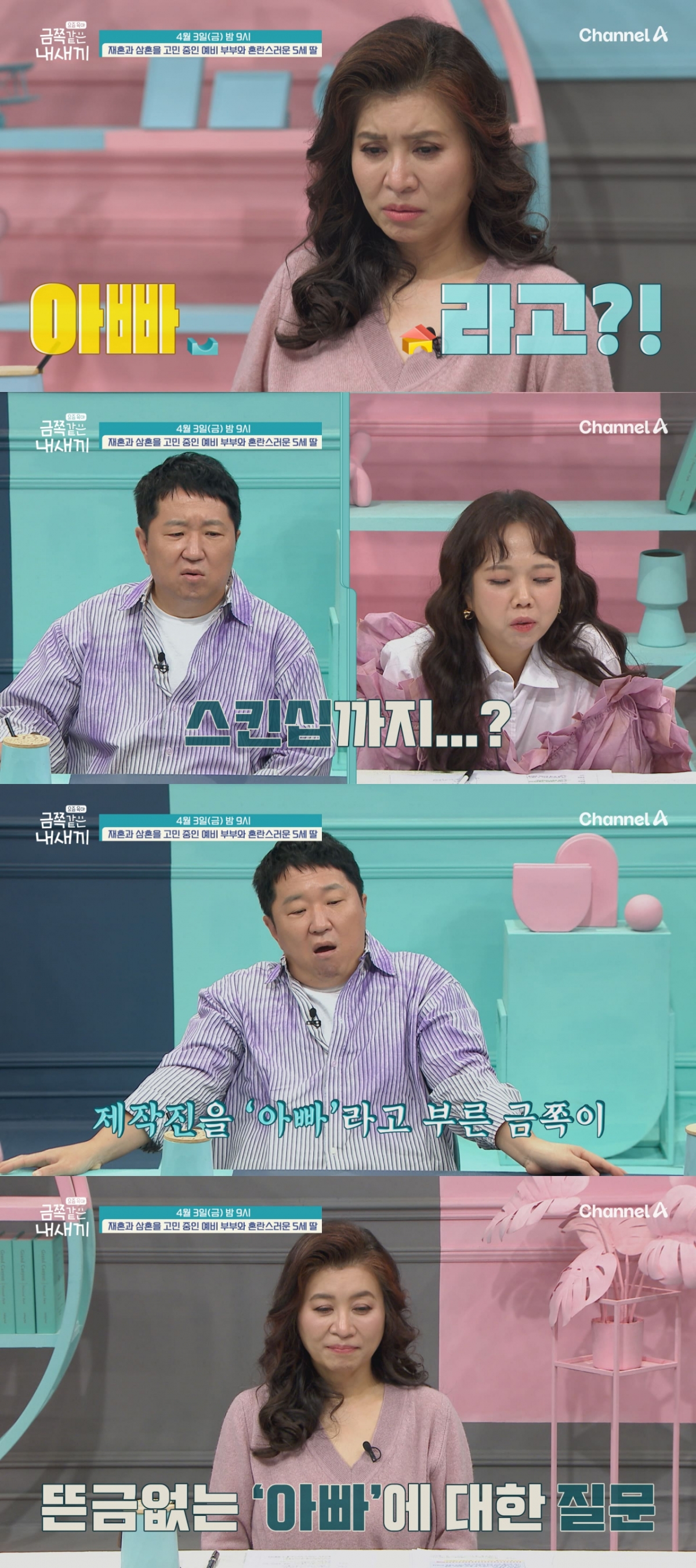 3일 방송되는 채널A 예능 프로그램 '요즘 육아 - 금쪽같은 내 새끼'에서는 '재혼과 삼혼을 고민 중인 예비부부와 혼란스러운 5세 딸' 이야기가 공개된다.