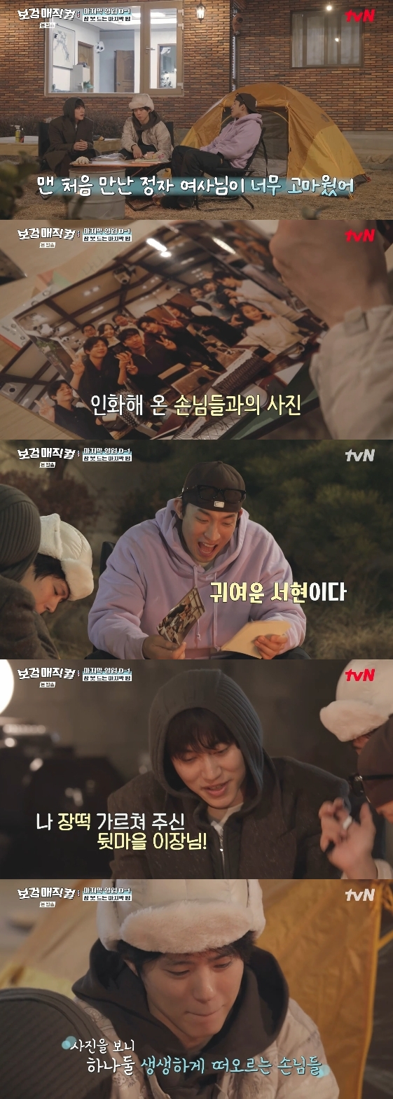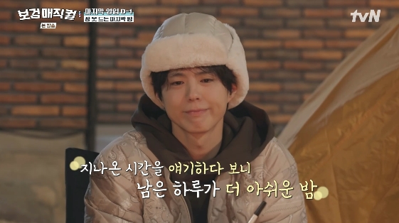3일 방송된 tvN 예능 프로그램 '보검 매직컬' 10화에는 무주를 떠나기 전, 마지막 밤을 기념하기 위해 캠핑을 준비하는 박보검, 이상이, 곽동연의 모습이 그려졌다.