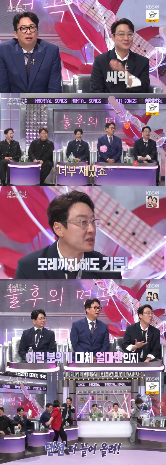 4일 방송된 KBS 2TV 예능 프로그램 '불후의 명곡'(이하 '불명')은 '2026 연예인 가왕전' 특집 2부로 진행된 가운데 랄랄, 개그콘스터 '챗플릭스'팀, 송일국&오만석,(뮤지컬 '헤이그' 팀), 이찬석, 조혜련이 출격했다.