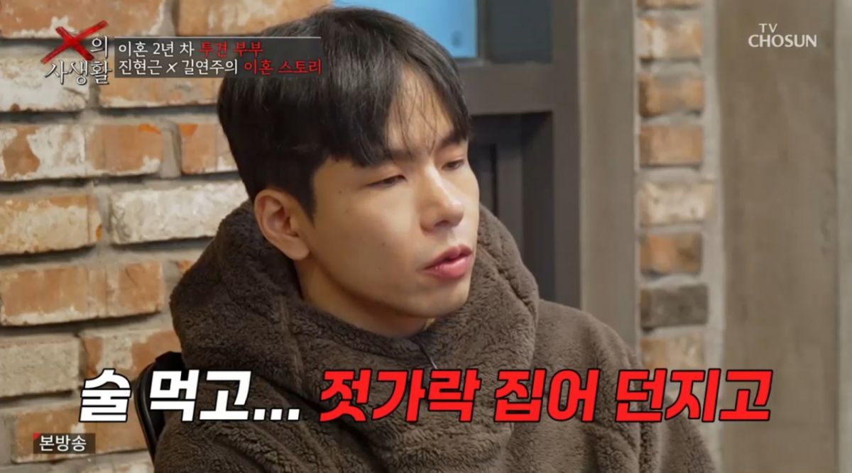 두 번째는 '알코올 의존'과 그로 인한 폭력성이었다. 진현근은 "아내가 술을 마시면 젓가락을 집어 던지는 등 공격적으로 변한다"고 증언했다.
