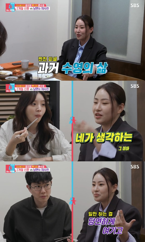 이날 김지영은 남편인 독서 모임 커뮤니티 CEO 윤수영과 함께 식당에 도착했다. 두 사람은 윤수영의 '여사친'(여자 사람 친구)를 기다렸다.