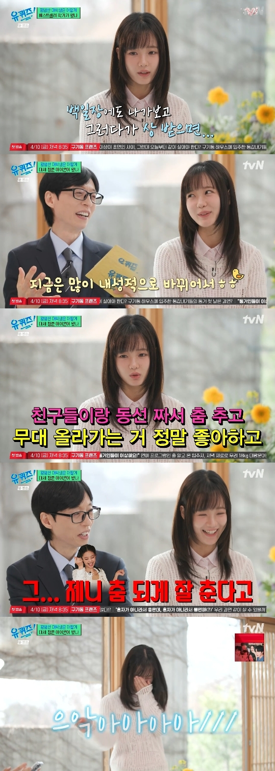 이에 한로로는 "지금은 내성적으로 바뀌었지만, 그때는 그랬다. 무대 올라가는 거 좋아하고 친구들이랑 동선 짜서 춤추기도 했다"라고 회상했다.
