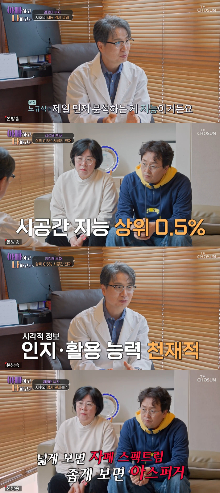 8일 방송된 TV조선 '아빠하고 나하고 시즌3'에서는 아스퍼거 증후군으로 의심되는 장남 김지후의 검사를 위해 병원에 방문한 김정태 부부의 이야기가 그려졌다.