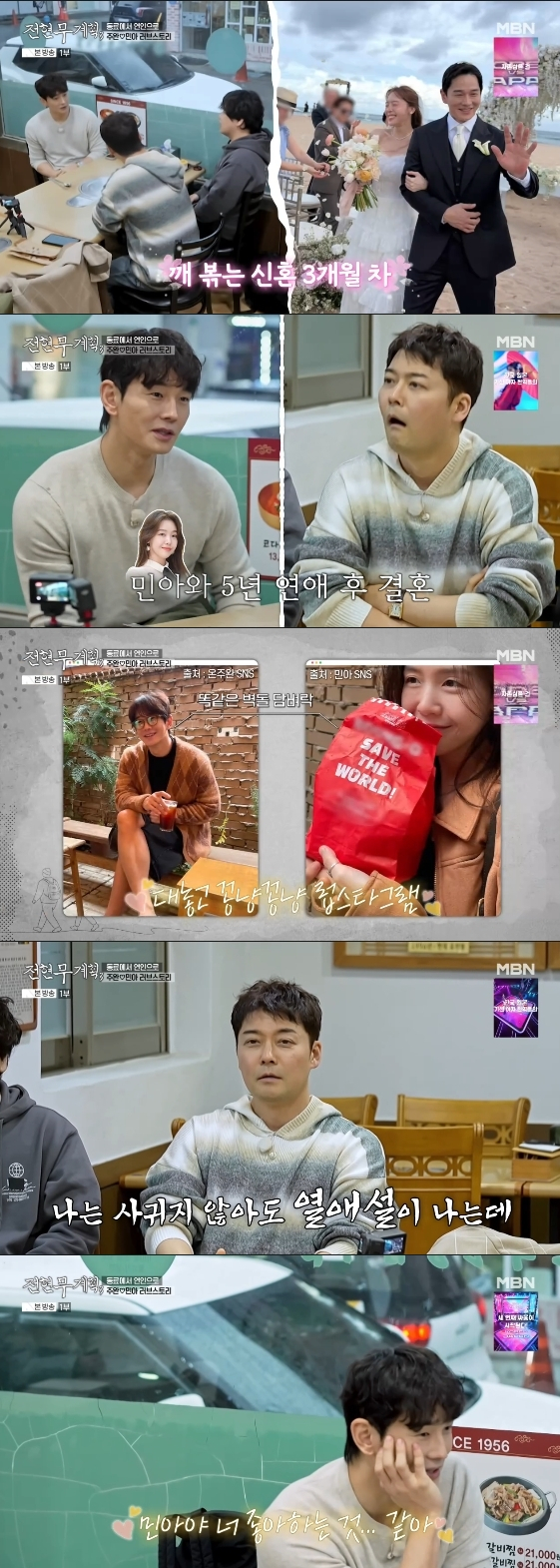 이에 전현무가 "나는 사귀지 않아도 열애설이 나는데"라고 한탄하자 온주완은 "민아 씨랑 그런 얘기를 한 적이 있다. 세상이 우리한테 관심이 없나 보다"라며 웃음을 터뜨렸다.