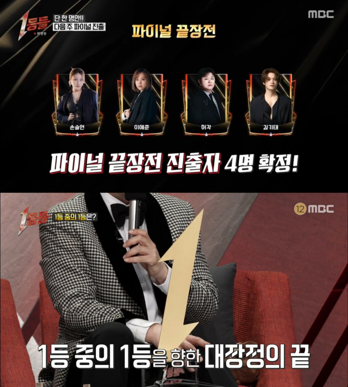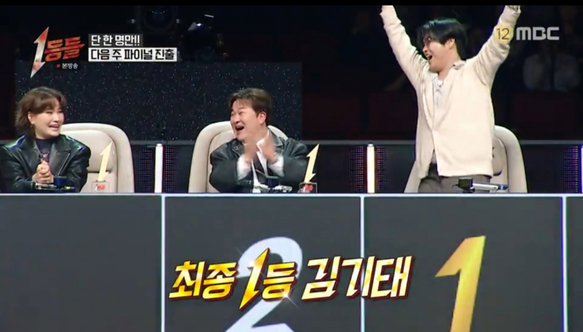 12일 밤 방송된 MBC 예능 프로그램 '1등들'에서는 단 한 장의 파이널 행 티켓을 놓고 펼쳐진 괴물 보컬들의 혈투가 그려졌다. 긴장감 속에 발표된 2차전 결과, 1위의 영광은 김기태에게 돌아갔다.