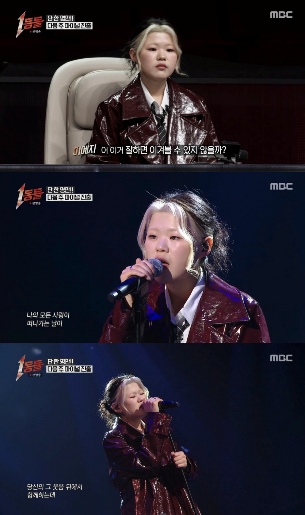 이날 방송에서는 파이널 마지막 진출자를 가리는 '줄 세우기전' 최종 대결이 펼쳐졌다. 김현식의 '내 사랑 내 곁에'를 선곡한 이예지는 "시원하게 후련하게 다 뱉고 오겠다"라며 각오를 전했다.