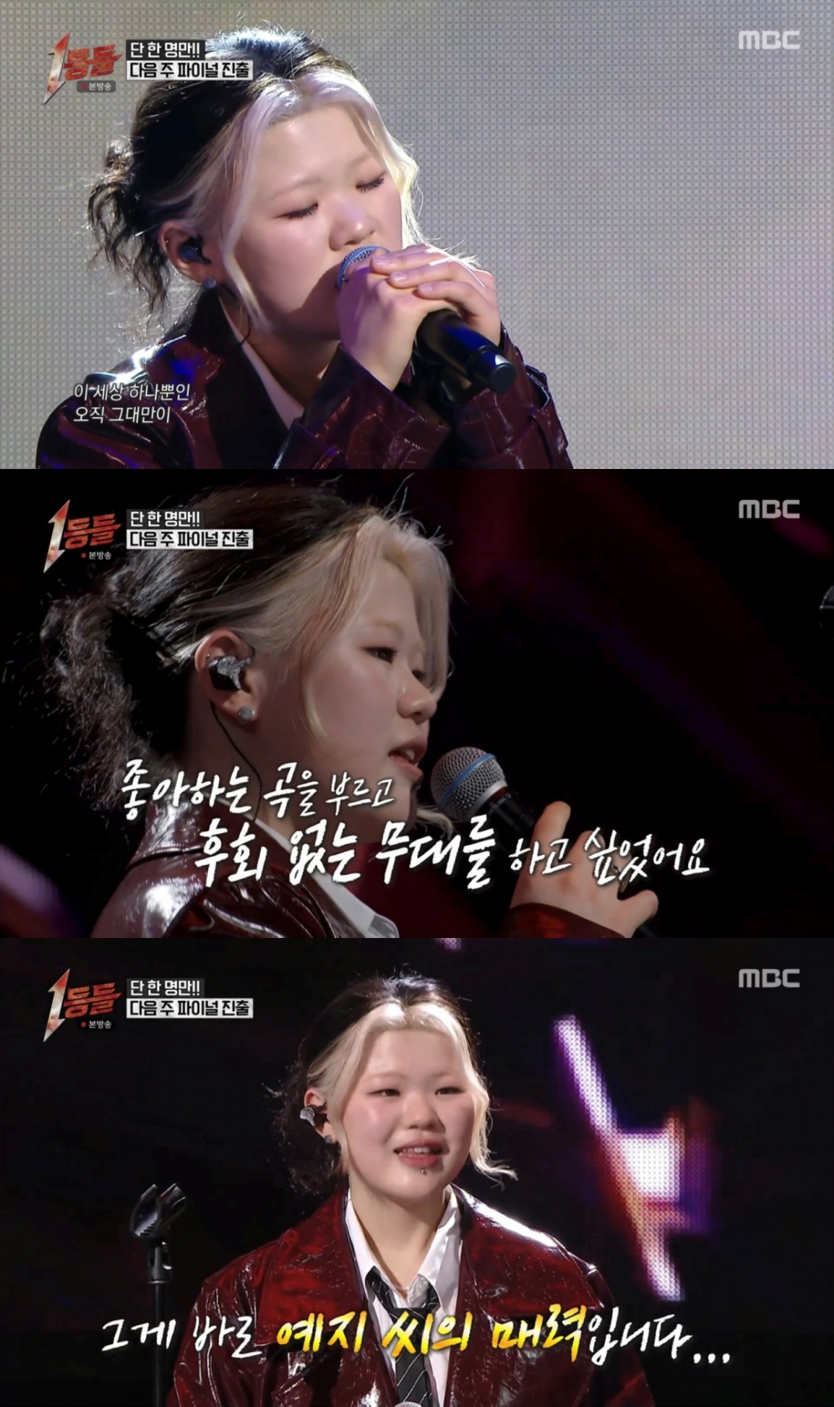 이예지는 지난 12일 방송된 MBC 예능 프로그램 '1등들'에 출연해 단 한 장 남은 '끝장전' 진출 티켓을 차지하기 위한 무대에 올랐다.