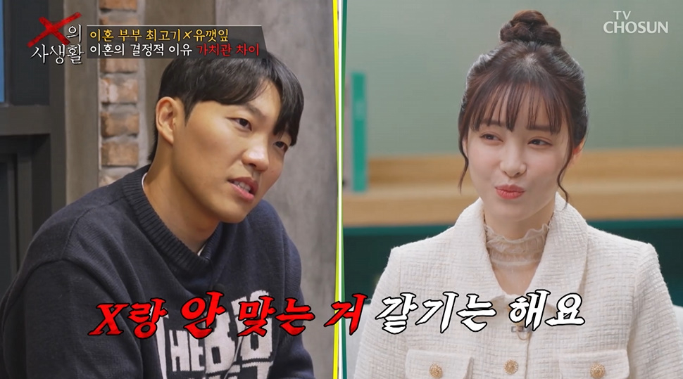 최고기 유깻잎은 14일 방송된 TV CHOSUN 'X의 사생활'에 출연해 이혼 당시를 각자 떠올렸다.