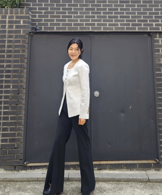 공개된 사진 속 한혜연은 화이트 재킷에 블랙 부츠컷 팬츠를 입고 늘씬한 각선미를 뽐내고 있다. 특히 통굽 구두를 매치해 8등신 비율을 과시해 시선을 모았다.