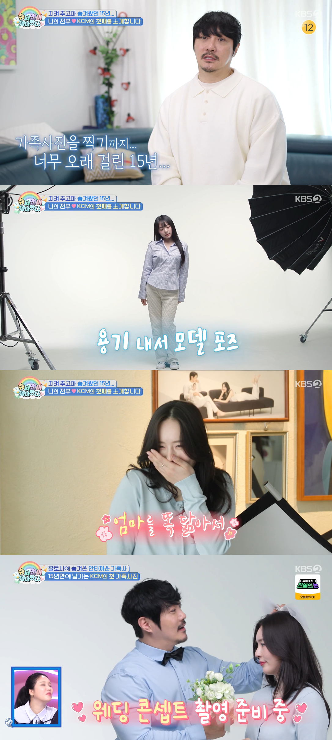 15일 방송된 KBS 2TV 예능 프로그램 '슈퍼맨이 돌아왔다'에서는 15년 만에 첫 가족 사진 촬영에 나선 KCM 가족의 이야기가 그려졌다.