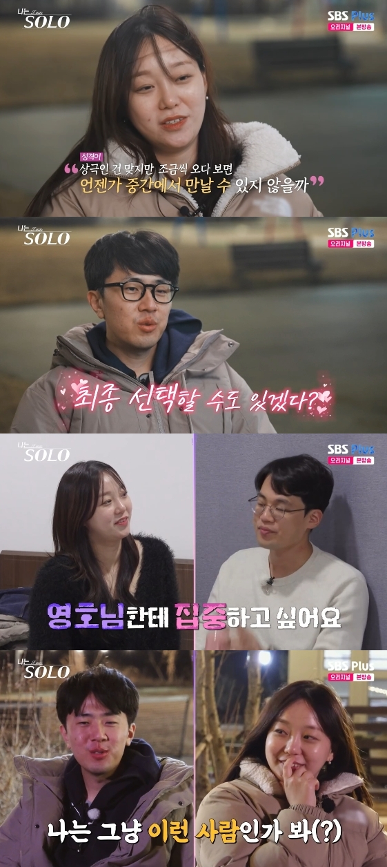 영호 역시 "최종 선택할 수도 있겠다. 제가 부족하다고 느낀 부분이 틀린 게 아닐 수도 있고 맞는 사람을 못 만난 걸 수도 있겠다 싶었다. 성향도 비슷하다고 느껴져서 호감이 많이 올라갔다"라고 말했다.