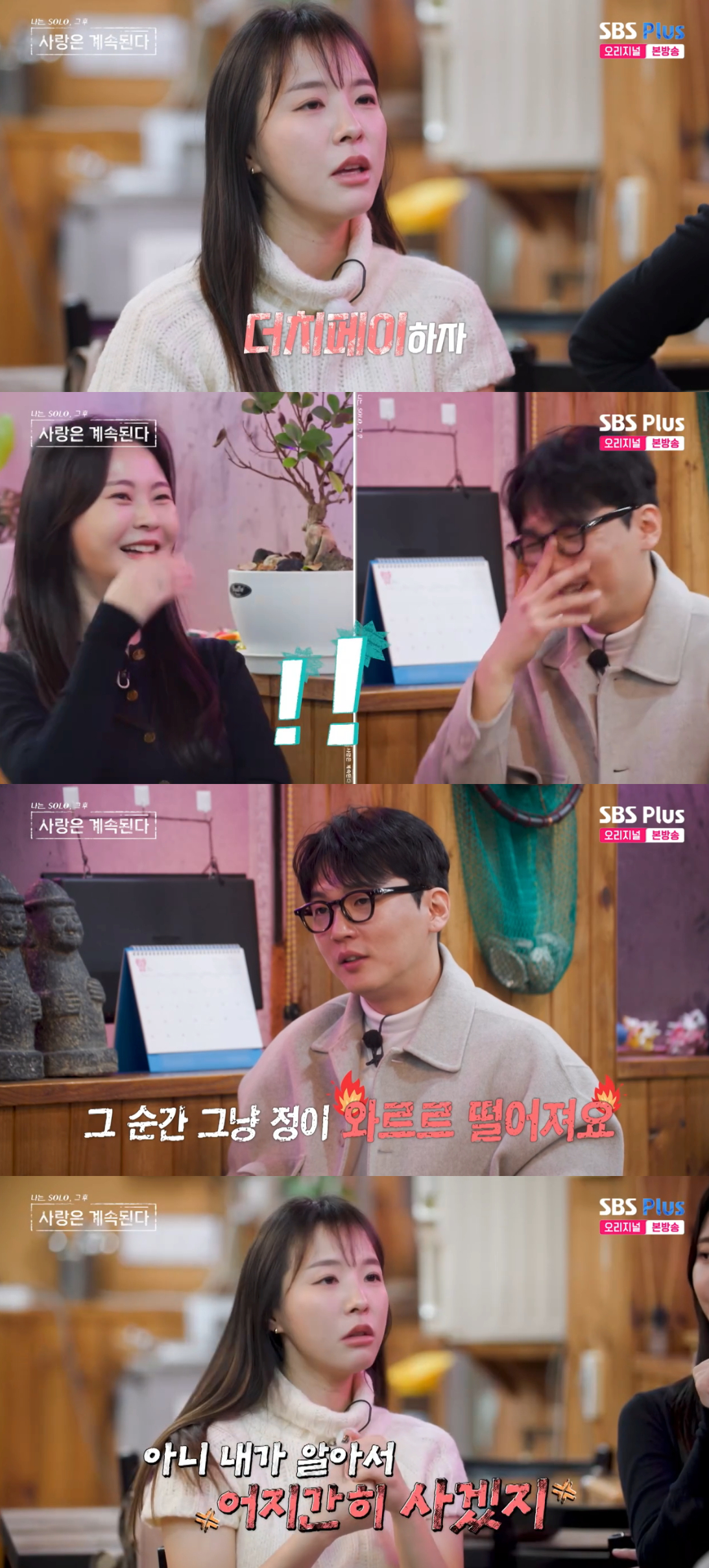 이어 18기 영호는 "이런 거 있냐. 아무리 좋아도 이런 거 정떨어진다"라고 질문했고, 24기 순자는 "저는 차은우가 와도 더치페이하자고 하면 절대 못 만난다. '이건 네가 사' 이렇게 말하면 순간 정이 와르르 떨어진다"고 소신을 드러냈다.