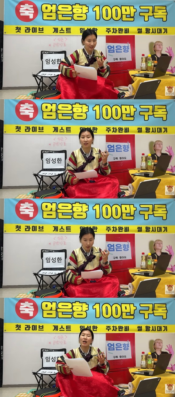 앞서 엄은향은 자신의 SNS를 통해 "'엄은향' 채널 100만 구독 기념 첫 라이브를 진행한다. 현재는 356만 구독인데 뒷북인 점 죄송하다. 첫 라이브 스페셜 게스트로 임성한 작가님을 모실 예정이다. 허언 공지 아니다. 놀랍게도 진실이다. 임성한 작가님이 연락을 주셨다. 모든 비하인드, 라이브에서 털어드리겠다"고 임성한과의 합동 라이브 방송 소식을 알렸다.