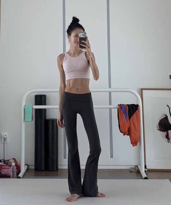 공개된 사진 속 윤혜진은 탱크톱에 레깅스 차림으로 발레바 앞에서 거울 셀카를 찍고 있다. 군살 하나 없는 극세사 몸매에 선명한 11자 복근이 시선을 끈다.
