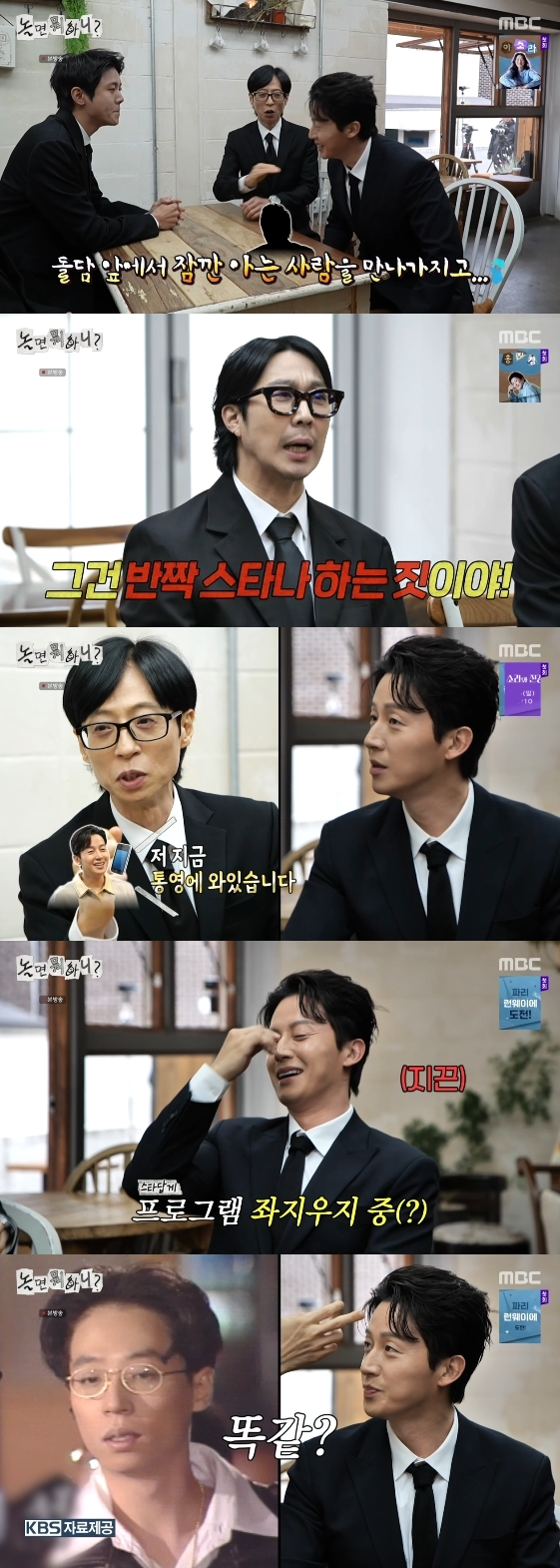 이때 게스트로 정준하가 등장하자 허경환은 "아까 저분을 만났다. 입구에서 만나서 얘기하다 늦었다"라고 억울함을 토로해 웃음을 더했다.