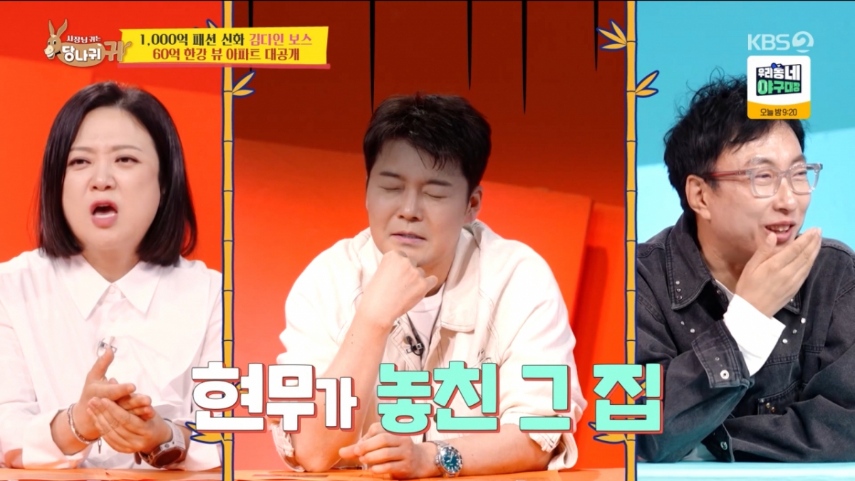 19일 방송된 KBS 2TV 예능 프로그램 '사장님 귀는 당나귀 귀'(이하 '사당귀')에서는 '1000억 패션 신화'의 주인공 김다인 대표의 일상이 그려졌다. 이날 방송에서는 방송인 박명수와 오마이걸 효정이 김다인 대표의 집을 직접 방문하는 장면이 공개됐다.