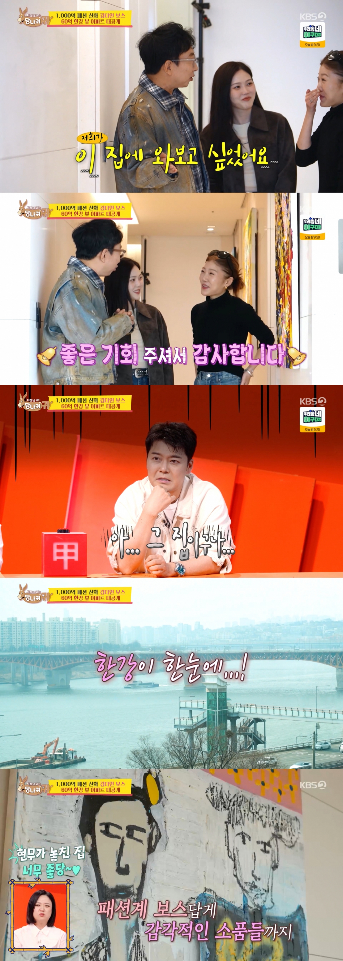특히 박명수는 효정에게 거실 너머 펼쳐진 풍경을 가리키며 "여기 한강뷰가 기가 막히거든, 한번 봐봐"라며 기대감을 높였다. 이를 스튜디오에서 지켜보던 전현무는 "아, 그 집이구나"라며 단번에 집의 위치를 알아챘다.