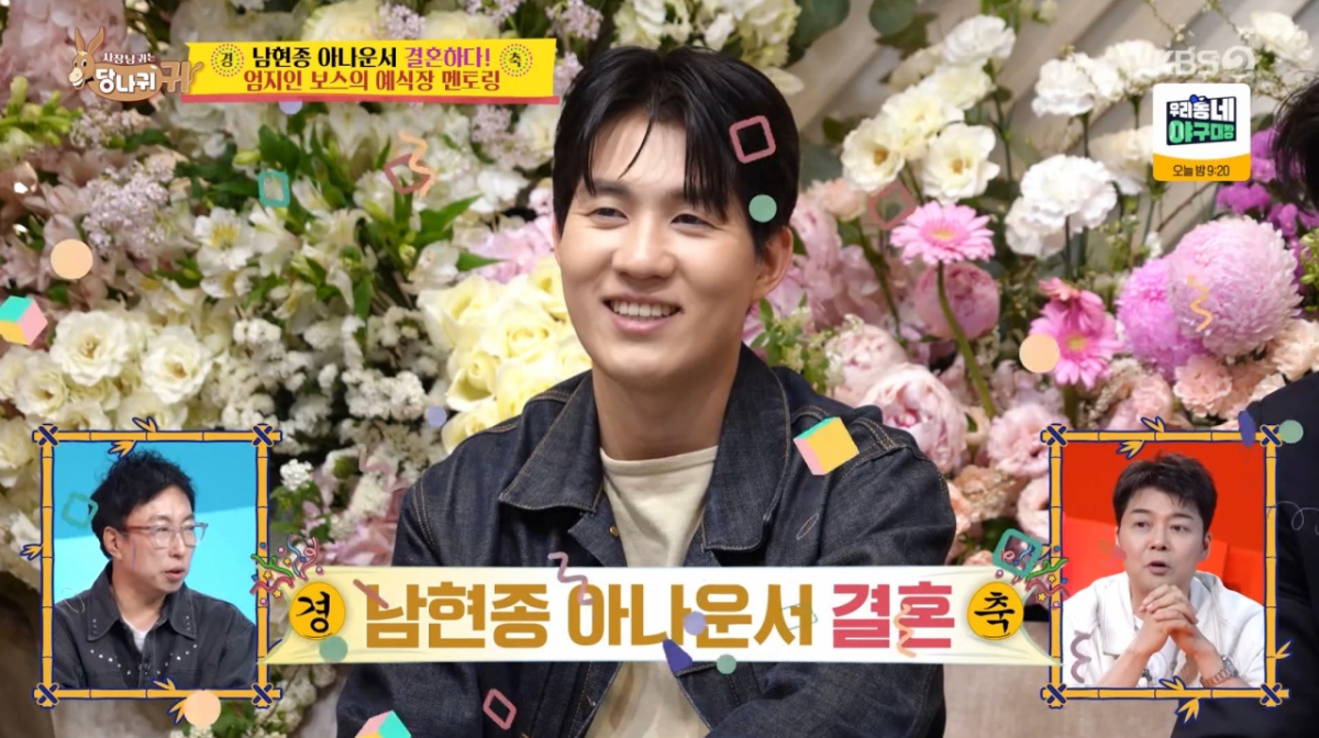 19일 방송된 '사장님 귀는 당나귀 귀'(이하 '사당귀')에서는 남현종 아나운서의 결혼 준비 과정이 공개됐다. 그동안 "여자친구가 없다"고 밝혀온 그의 갑작스러운 발표에 엄지인 아나운서는 "분명히 없다고 했는데 갑자기 어떻게 된 거냐"며 놀라움을 드러냈다.