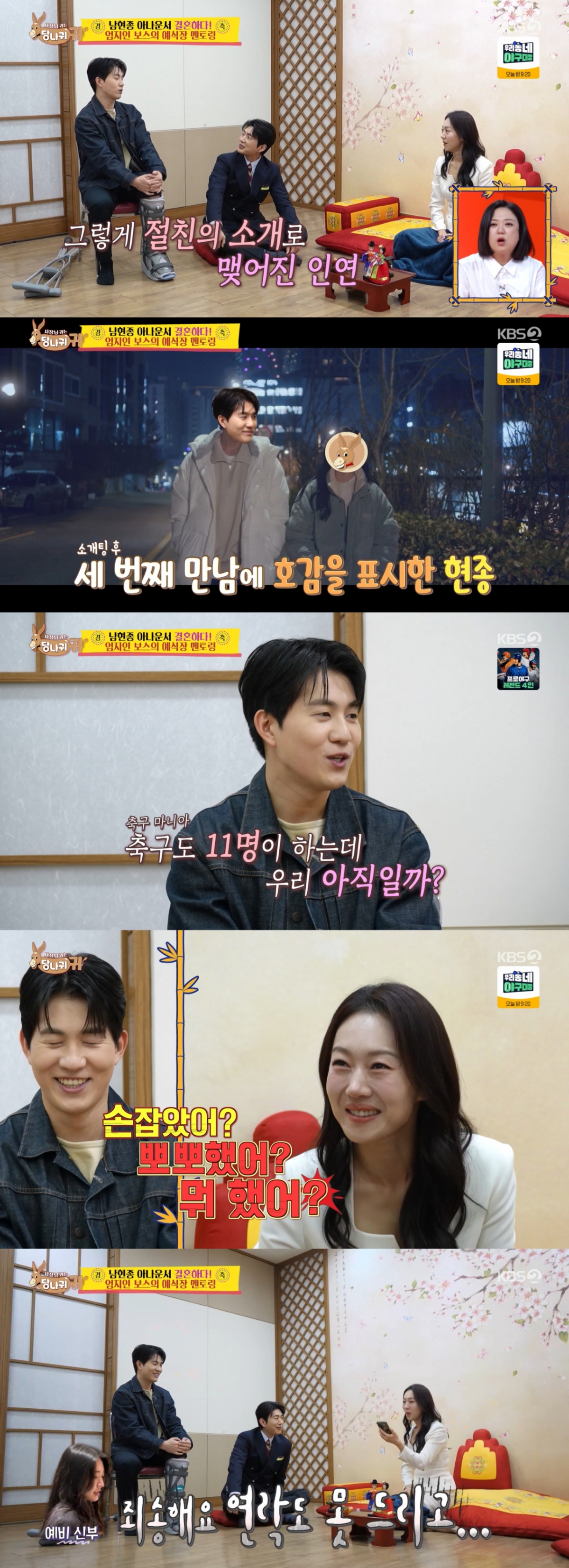 두 사람의 설레는 일화에 엄지인 아나운서는 "그 다음에 손은 잡았어? 뽀뽀했어?"라고 짓궂게 물었고, 이를 지켜보던 전현무는 "주책바가지"라고 일침을 가해 현장을 웃음 바다로 만들었다. 남현종은 쑥스러운 미소와 함께 "손잡았다"고 수줍게 대답했다.
