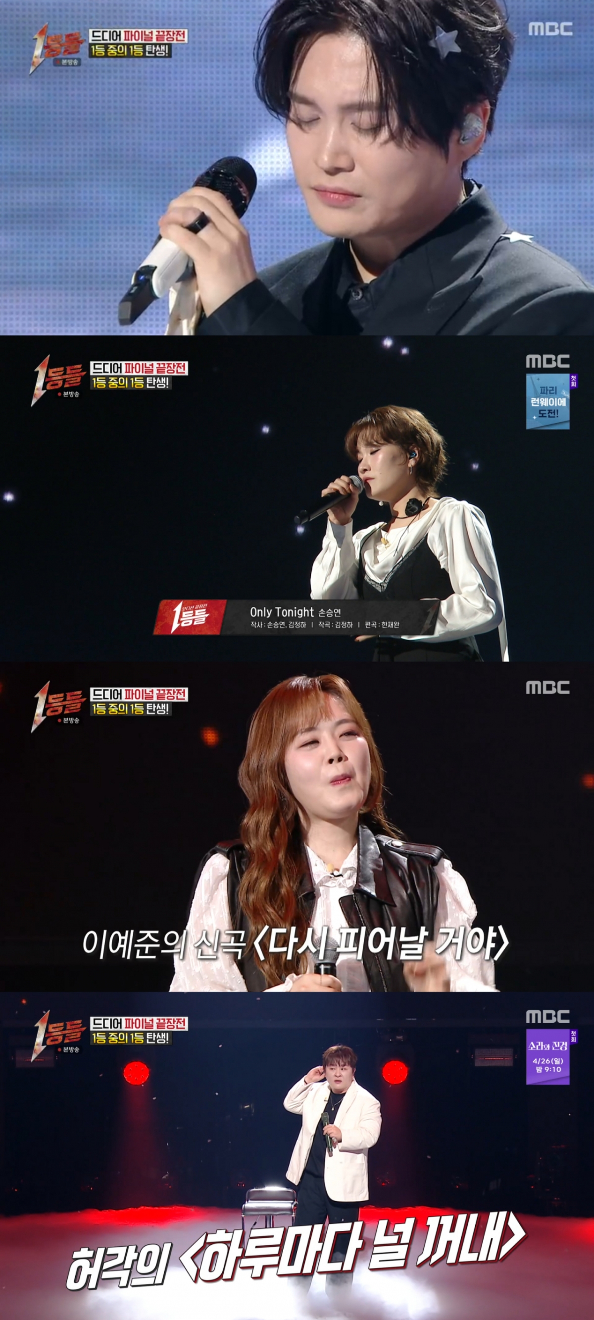 19일 방송된 MBC 예능 프로그램 '1등들'에서는 TOP4 손승연, 이예준, 김기태, 허각이 우승을 두고 마지막 경합에 나섰다. 결승전은 최초 공개 신곡 무대 1차전과 결승곡 무대 2차전으로 나뉘어 진행되며 긴장감을 더했다.