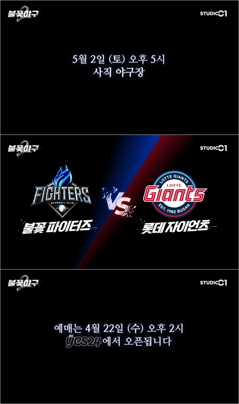 불꽃 파이터즈와 롯데 자이언츠 퓨처스리그와의 경기는 오는 5월 2일 부산 사직 야구장에서 열린다. 경기는 오는 22일 오후 2시 예스24를 통해 예매할 수 있다.