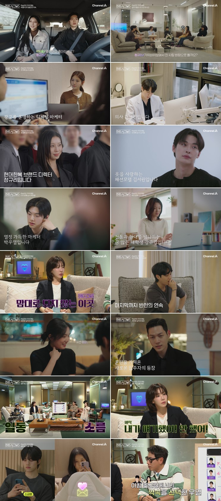 지난 21일 방송된 채널A '하트시그널5' 2회에서는 '시그널 하우스'에 입주한 6인 박우열-김성민-김서원-김민주-정규리-강유경이 2일 차를 맞아 직업과 나이를 공개했다. 이어 상남자 매력을 물씬 풍기는 '메기남' 정준현이 등장해 러브라인 지각 변동이 예고됐다. 입주 첫 날 '0표'에 그쳤던 정규리는 '호감도 문자'를 2표를 받으면서 박우열과 쌍방향 호감을 확인했다.